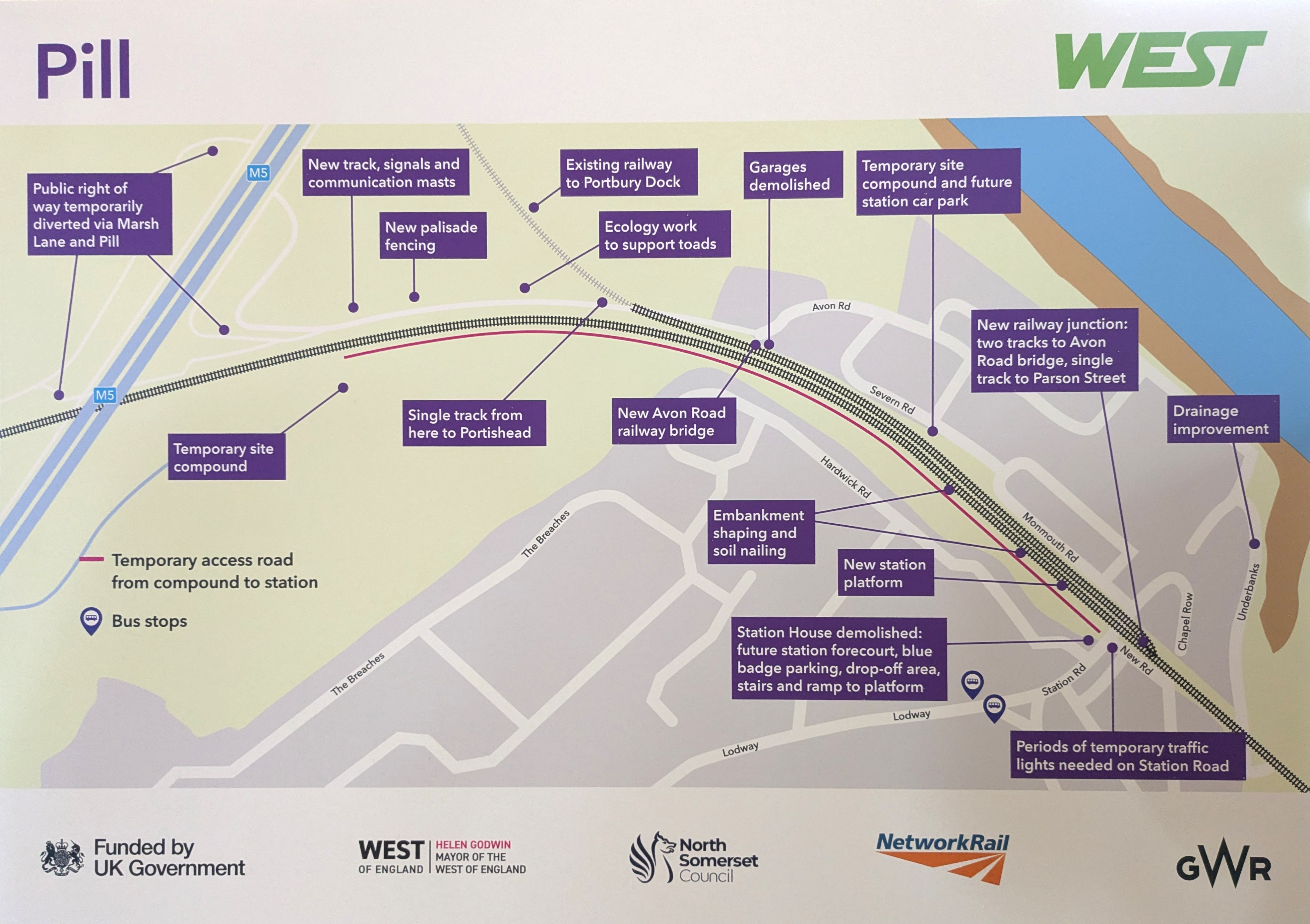The map above shows the work planned at Pill station and surrounding area. Click map to enlarge |