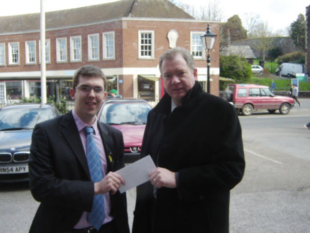 Mar 2007: Alistair Lindsay, a member of this Group, handed a copy of the proposed phased opening of the Portishead Line (see below 25 Jan 07) to the Under Sec. of State for Transport Tom Harris MP, during his visit to Exeter. See photo